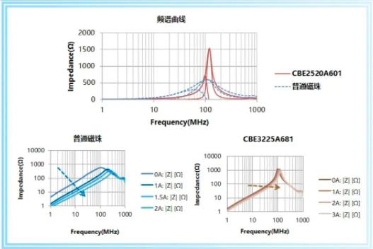 CBE系列片式磁珠具有低直流電阻(DCR)、高額定電流 (Ir)的特點(diǎn),產(chǎn)(DCR)、品通流能力出色,同時(shí),CBE在特定頻率區(qū)間(100~400MHz)內(nèi)具有較高的阻抗值,可有效濾除該頻段噪聲。音頻磁珠CBE產(chǎn)品電流穩(wěn)定性優(yōu)秀,在較大電流通過時(shí)仍能保持較高阻抗值,大電流下阻抗變化率較小,耐電流特性好.