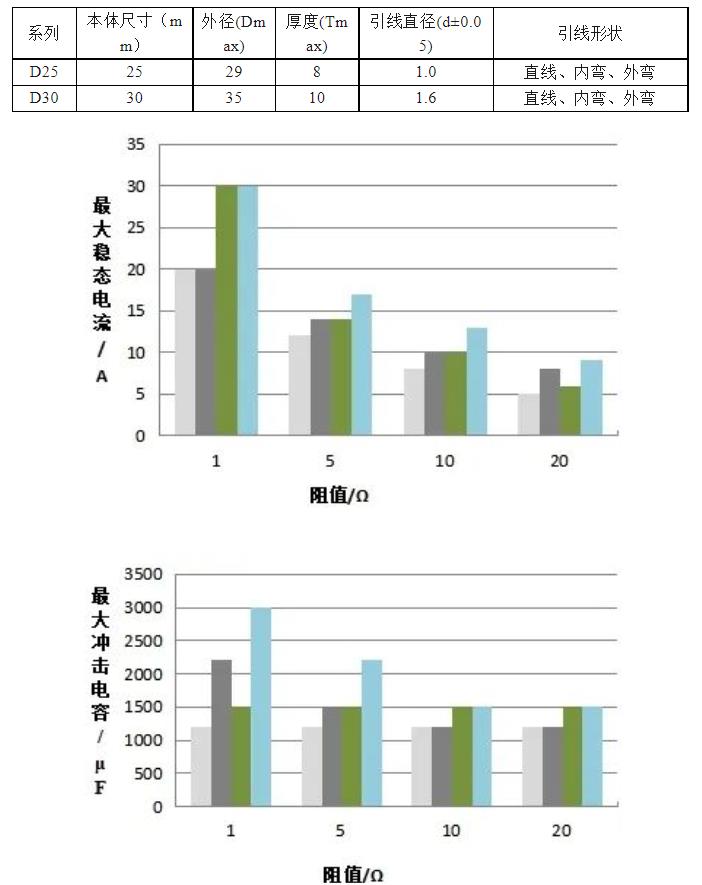 風華高科推出新品高功率D25/D30NTC熱敏電阻系列產(chǎn)品,大幅提升了產(chǎn)品穩(wěn)態(tài)電流能力,具有殘余電阻小,自身功耗低等優(yōu)點,更適用于大功率開關電源、充電樁等各種高功率設備。該系列產(chǎn)品能在電路接通瞬間抑制浪涌電流的沖擊,有效解決大電流帶來的器件加速劣化問題。目前主要量產(chǎn)型號為1D-25、5D-25、20D-25、1D-30、5D-30以及20D-30。