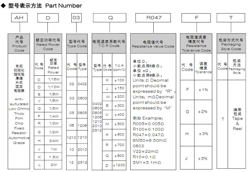 風華高科車規(guī)抗硫化超低阻厚膜片式固定電阻器型號命名規(guī)則: