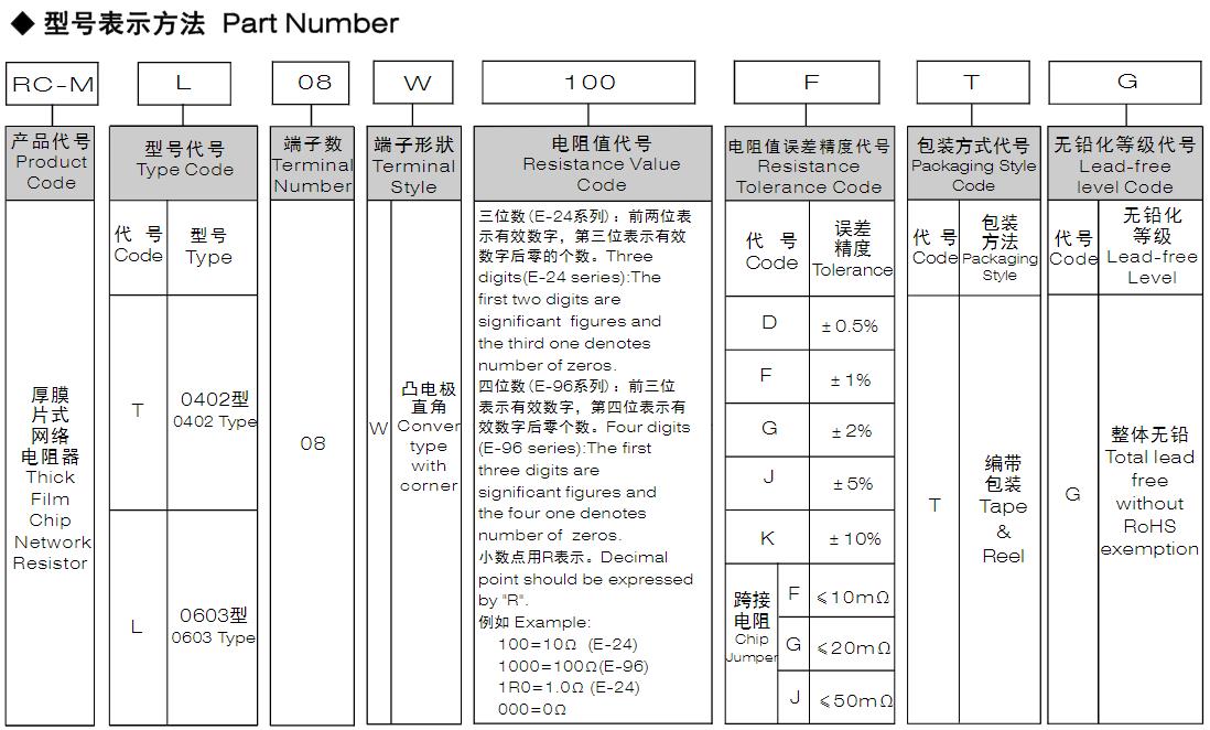 風華高科無鉛厚膜片式網(wǎng)絡(luò)電阻器型號命名規(guī)則: