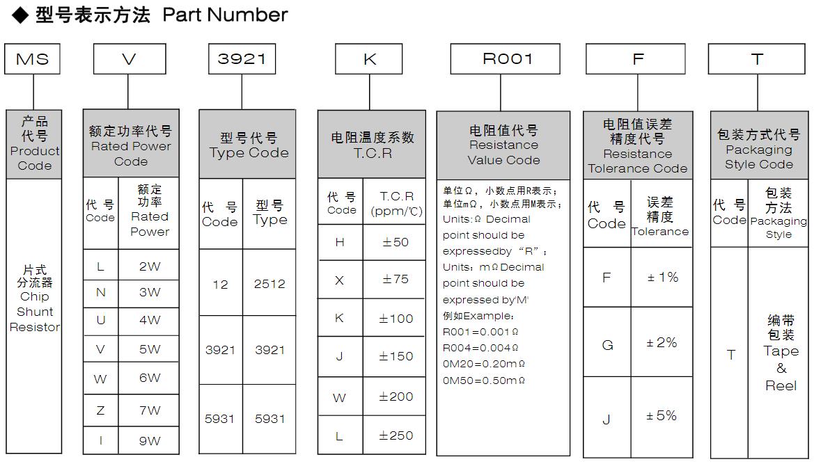 風(fēng)華高科片式分流電阻器型號命名規(guī)則: