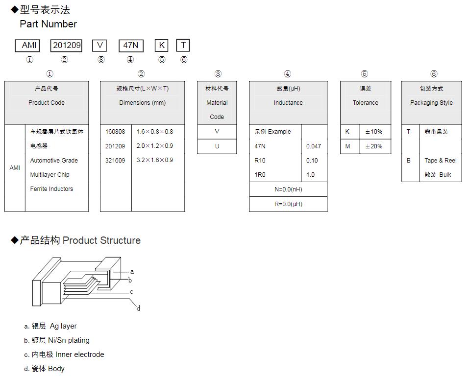 風(fēng)華高科車(chē)規(guī)疊層片式鐵氧體電感器命名規(guī)則: