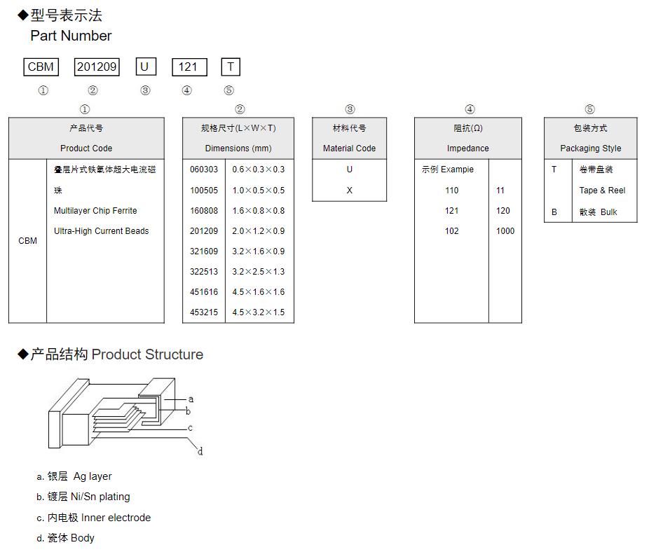 風華高科疊層片式鐵氧體超大電流磁珠(CBM) 命名規(guī)則:
