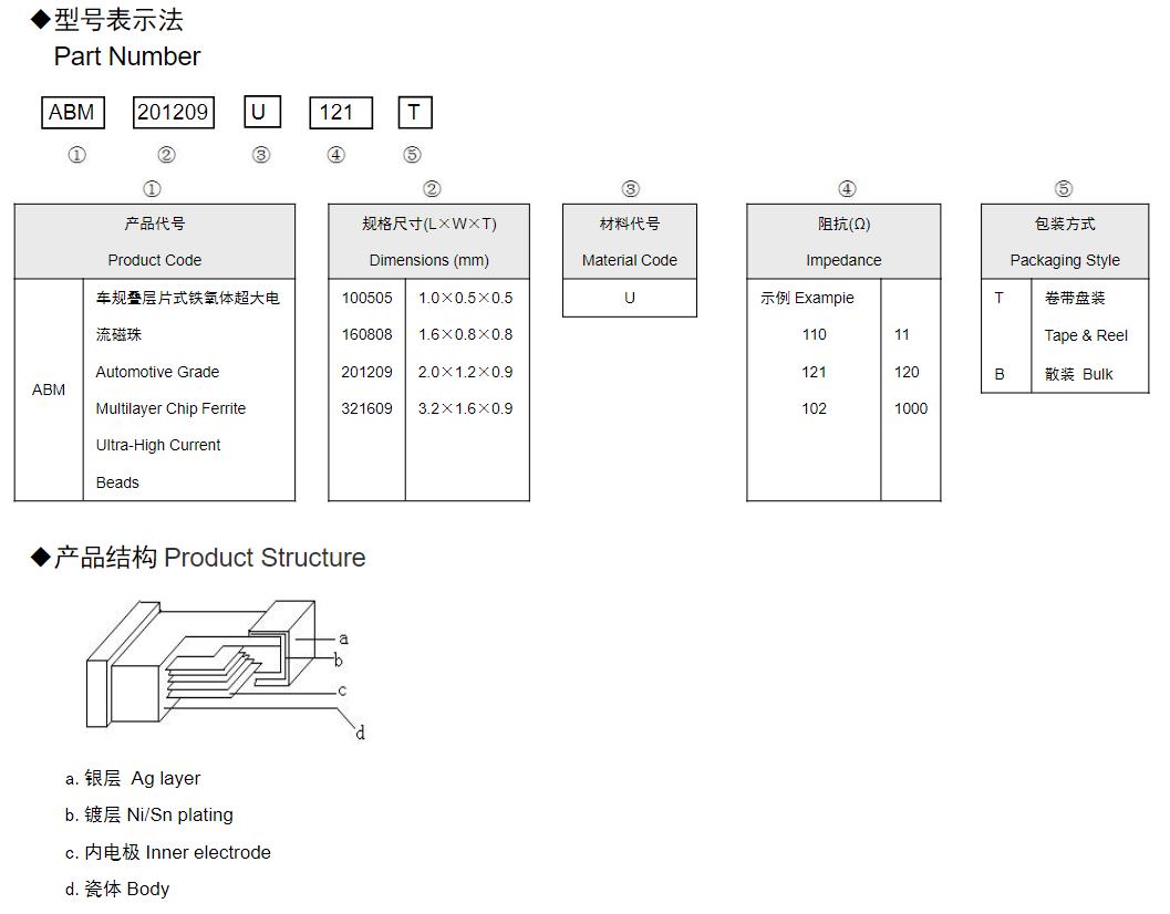 風(fēng)華高科車(chē)規(guī)疊層片式鐵氧體超大電流磁珠命名規(guī)則: