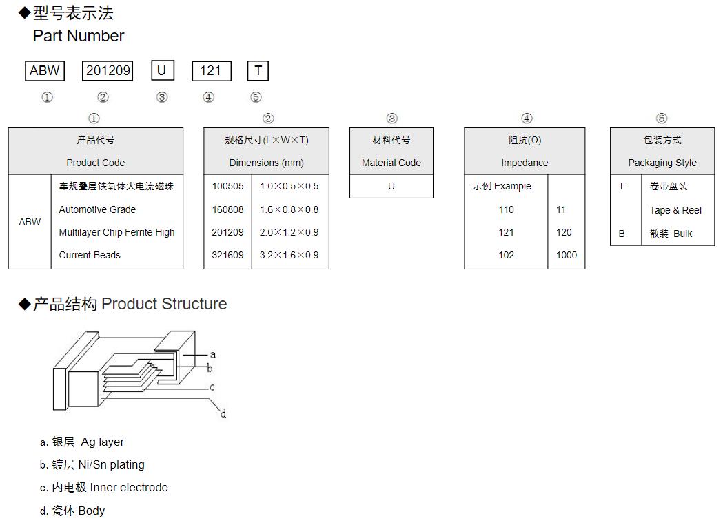 風(fēng)華高科車(chē)規(guī)疊層片式鐵氧體大電流磁珠命名規(guī)則:
