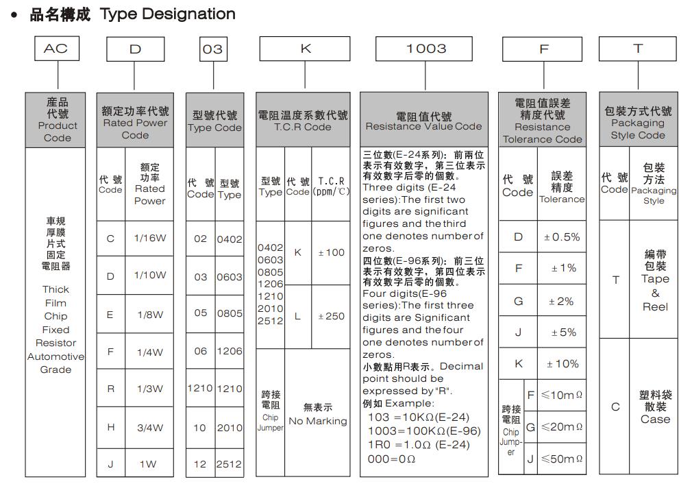 厚聲車規(guī)電阻命名規(guī)則對照表
