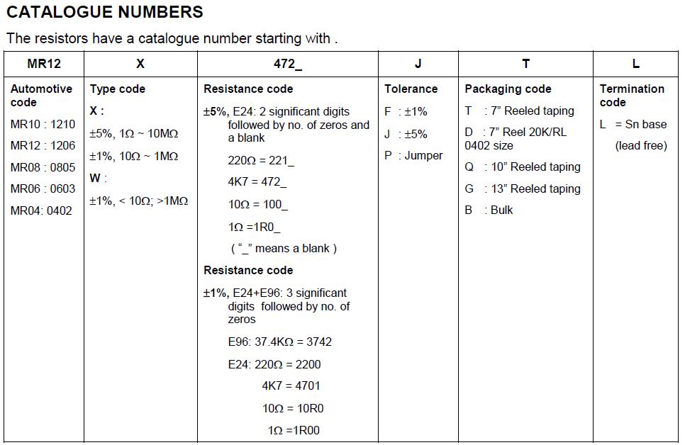 華新科車規(guī)電阻命名規(guī)則對照表: