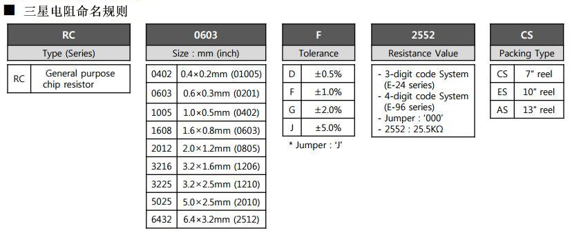 三星貼片電阻規(guī)格對照表