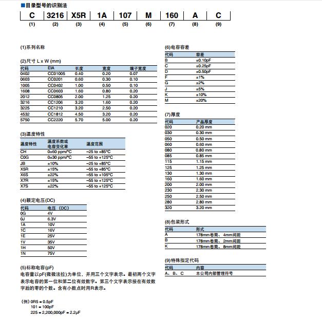 2、尺寸體積是由公制表示:0603=0201 1005=0402 1608=0603 2012=0805 3216=1206 3225=1210 4532=1812