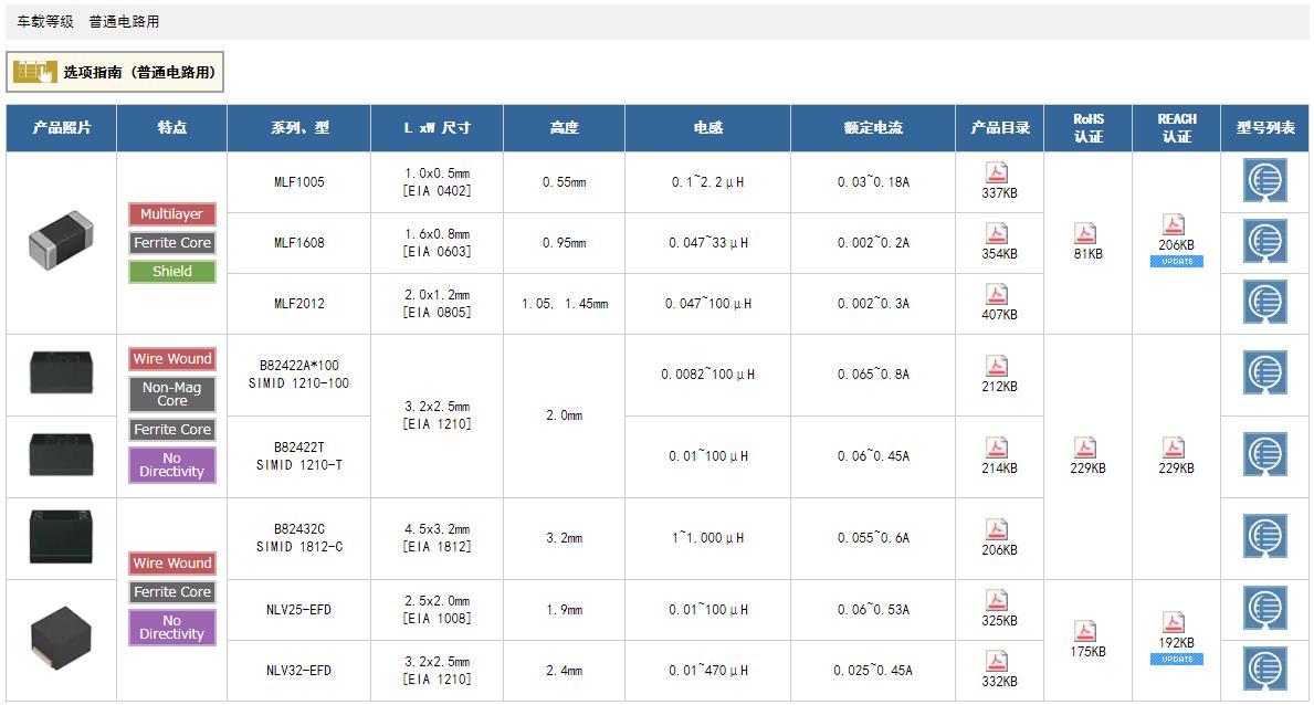TDK電感器分類:1、SMD/SMT 電感器(線圈) 2、帶導(dǎo)線電感器(帶導(dǎo)線線圈) 3、應(yīng)答器線圈
