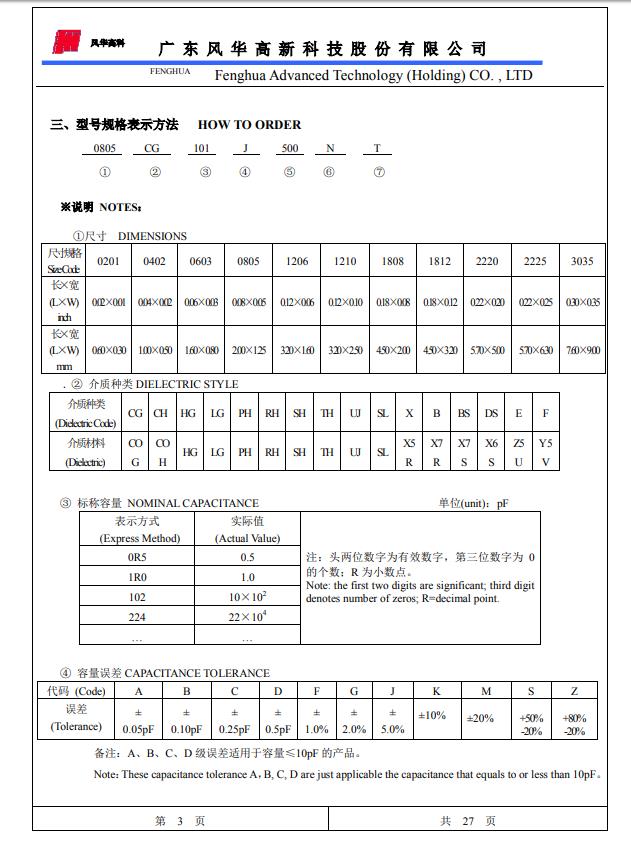 2、風(fēng)華電容介質(zhì)種類:常用CG(COG或NPO)、B(X7R)、F(Y5V)、X(X5R)、E(Z5U)