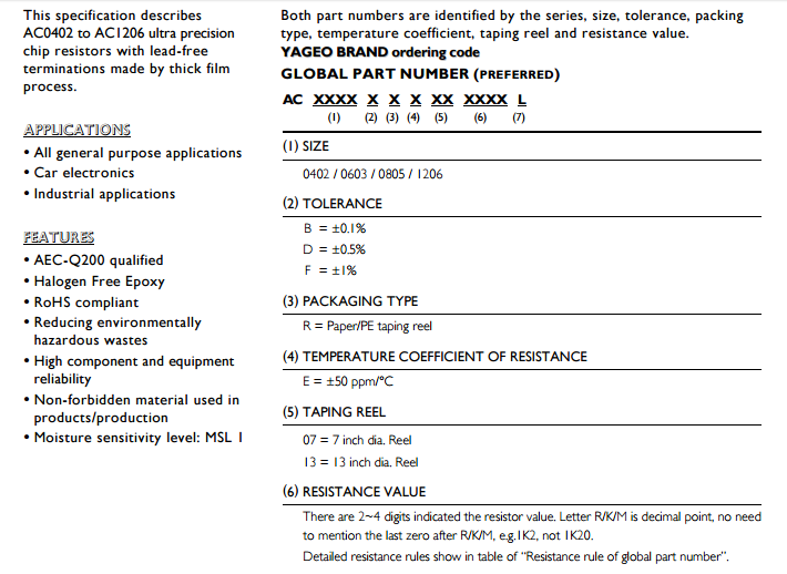 YAGEO_國(guó)巨車(chē)規(guī)電阻_國(guó)巨汽車(chē)級(jí)電阻_AC系列_國(guó)巨代理商
