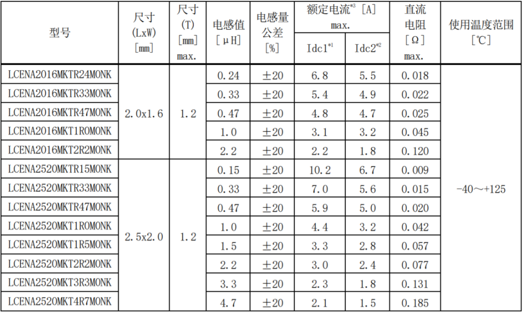*1 額定電流(Idc1)是負載直流電流時的電感變化率在 30%以內(nèi)的電流值(at 20℃)