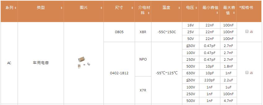 AC車用電容符合AEC-Q200標(biāo)準(zhǔn),PPAP檔IOS / TS16949認(rèn)證電路板彎曲≧2mm100%自動(dòng)光學(xué)檢查(AOI)高可靠性