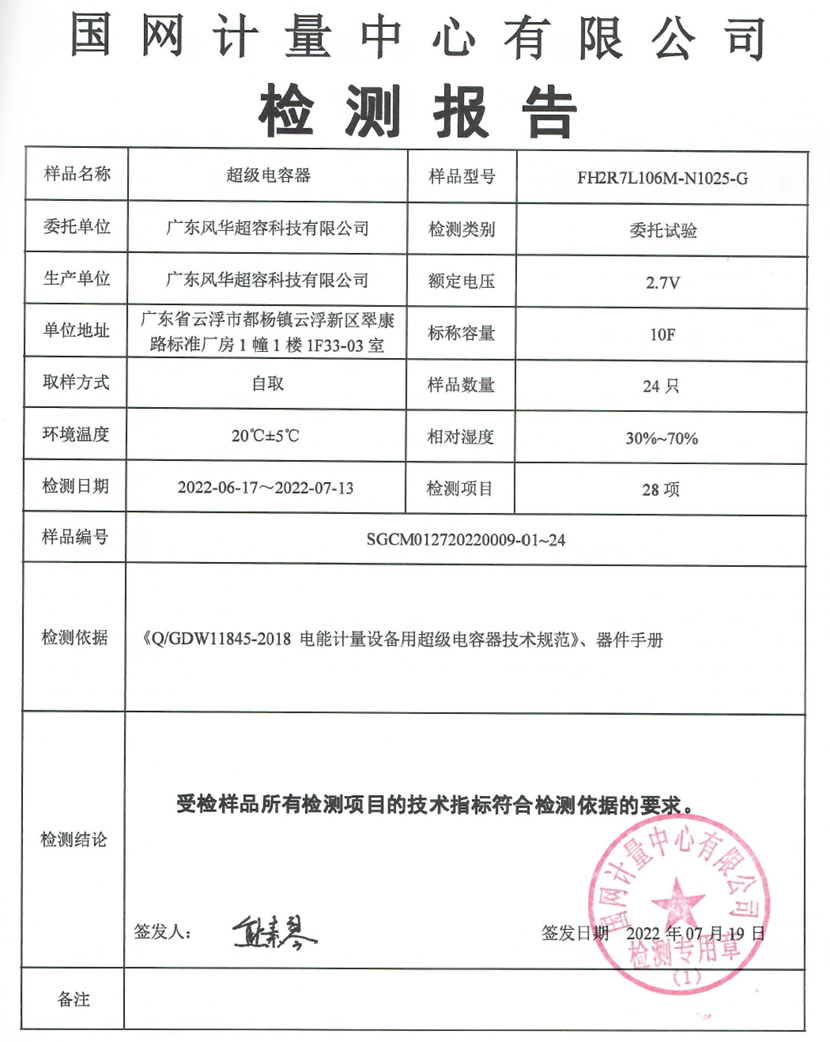 7月下旬,風(fēng)華高科超級電容器產(chǎn)品在國網(wǎng)計量中心順利通過測試認(rèn)證,該認(rèn)證表明風(fēng)華高科超容產(chǎn)品完全符合國家電網(wǎng)智能電表的嚴(yán)格要求。